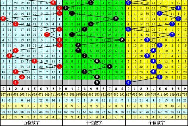 百位分析:该位上期奖号为3,出现0路、奇数、小号,在前11期奖号,该位012路比为5:2:4,1路号码走冷,目前012路号码遗漏期数分别为0、4和1,近期百位注意2路号码走热。