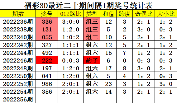 256期四叔福彩3D预测奖号:奇偶大小和尾跨度