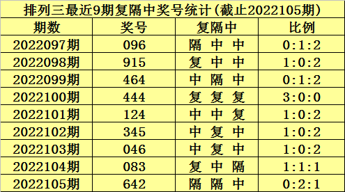 本期号码复隔中比例参考2:0:1。