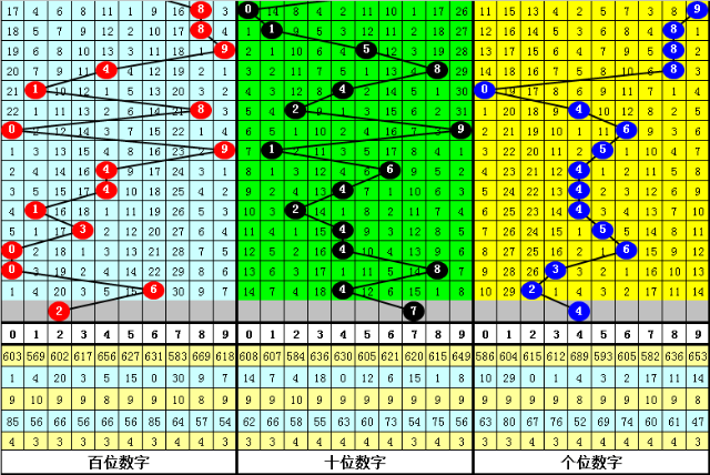 百位分析:百位最近9期出号:0-9-4-4-1-3-0-0-6,奖号大小比为2:7,奇偶比为3:6,012路比为6:3:0,本期百位参考号码023。