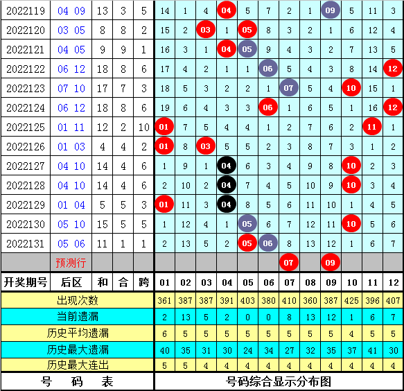 后区5码参考:03 04 05 07 09