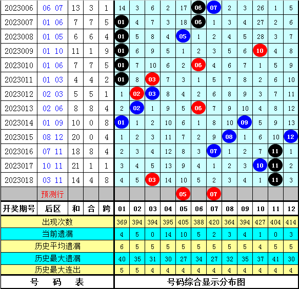 2、后区和值分析:在第019期历史同期奖号中,后区和值分别为:10-9-14-11-17-13-18-23-4-17-12-17-3-13-7-3,和值012路比为5:5:6,奇偶比为11:5,大小比为8:8,今年第019期看好出现小号和值,关注和值12。