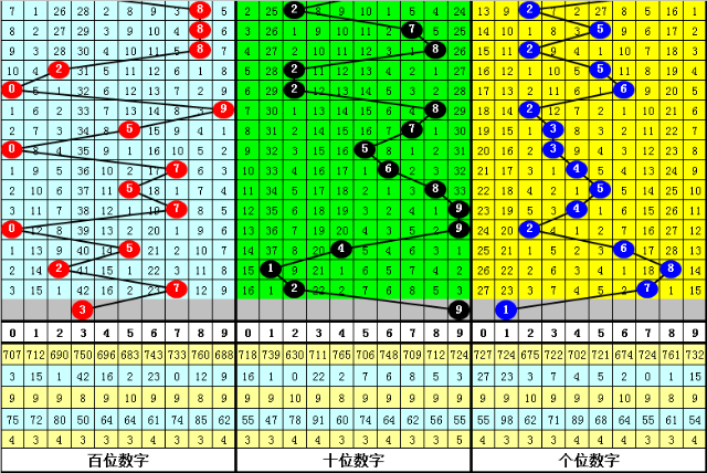 百个位合:前10期百个位两码合开出:1、8、3、1、0、1、2、1、0、4,其中百个位两码合012路比为3:5:2,奇偶比为5:5,本期参考百个位两码合开出偶数,两码合关注2、4、6。