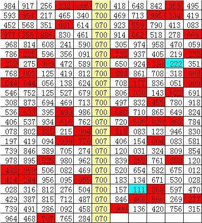 在以上统计表中,组选号码007开出之后,其下期组三号码出现5次,组六号码出现17次。其中,下期奖号有11期无重号,有11期开出重号,本期预计重号开出,看好开出组六号码。