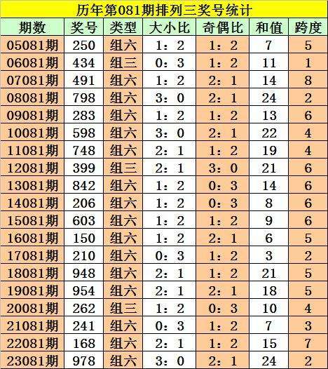 历年第081期奖号中:组三开出3次,组六开出16次。组三较少,本期注意组三反弹。