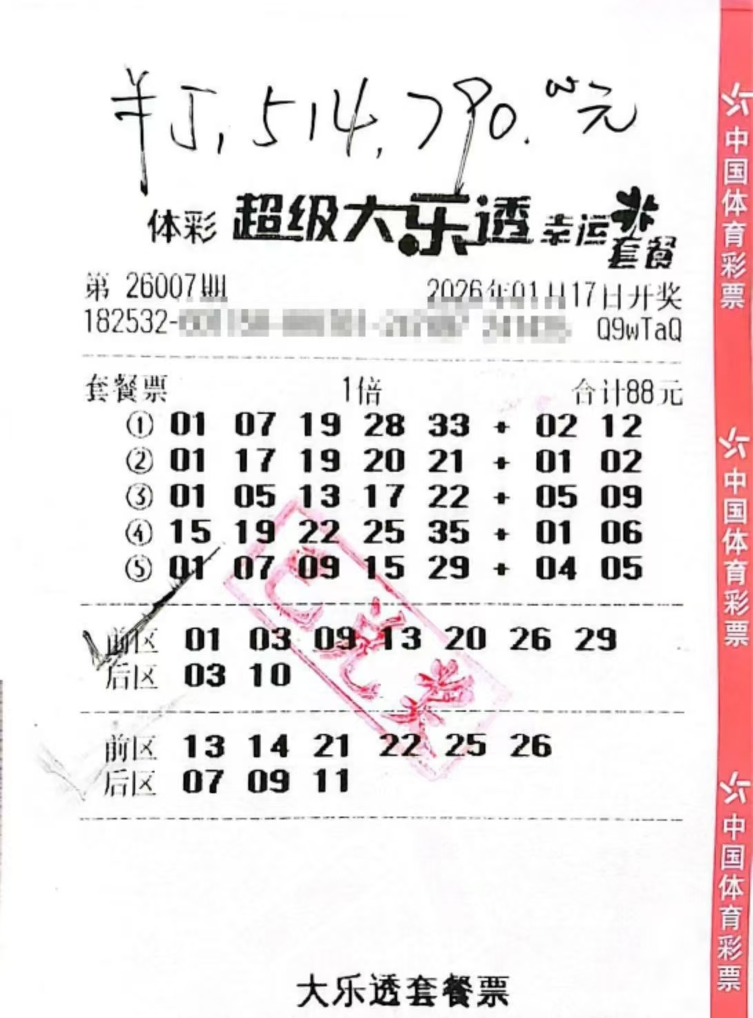 中奖者陈先生(化名)是一名年轻的体彩爱好者,平时就喜欢尝试不同的投注方式。这次他选择了一张88元的复式票,不仅精准命中一等奖,还同时收获了多注其他奖项。"当时在店里随机选了一组号,没想到真的中了!"陈先生表示,开奖当晚他反复核对了十几遍,才敢确认这个天大的好消息。