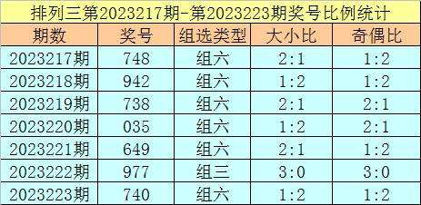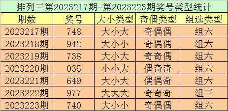 排列三第2023223期回顾:奖号740,奇偶比1:2,大小比1:2,和值11,类型:组六。