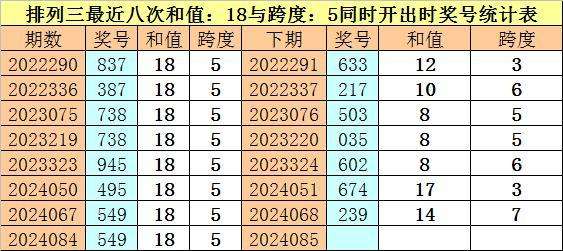 开奖回顾:体彩排列三第2024084期奖号为:549。和值为:18,跨度为:5。