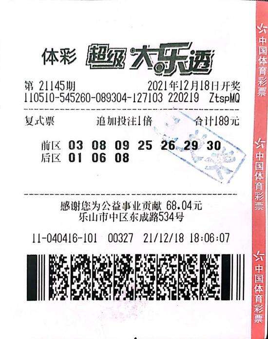 数据显示,四川中出的1800万元出自乐山,中奖彩票为一张7+3复式追加票,单票投入189元,擒奖1852万元。由于采用了追加投注,乐山的幸运购彩者在单注一等奖方面多拿了800万元追加奖金。