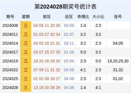 连号分析:上周三没有开出连码,近8周同星期三的奖号数据中,开出连码的概率为50。00%,本周三预测会开出连号:27,28。