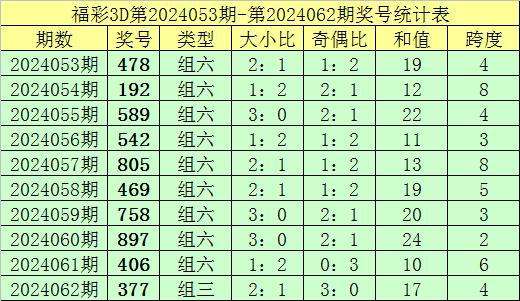 其中大小比2:1,奇偶比3:0,和值17,跨度4。