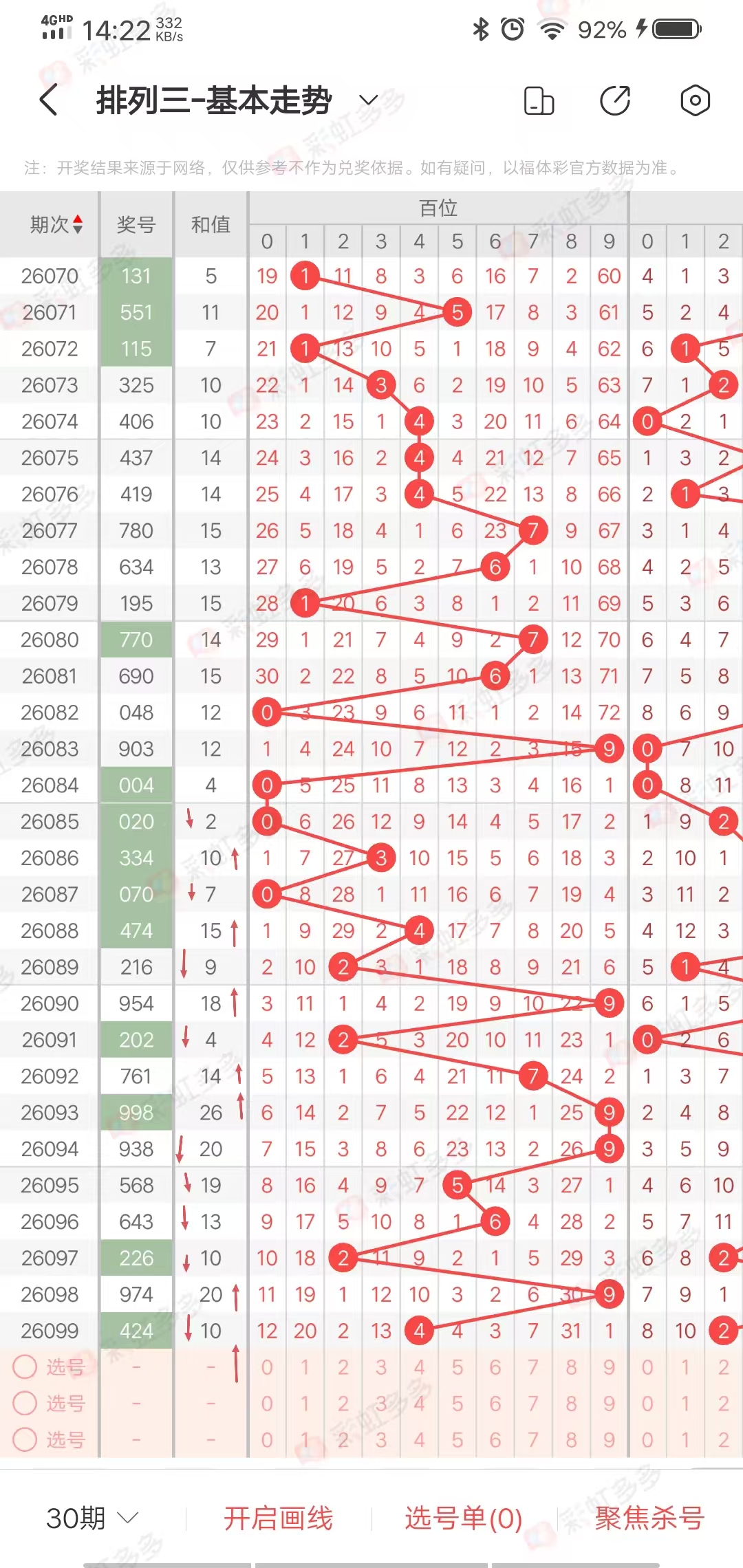 排列三和尾:即开奖号码之和,取个位数的号码,即和值尾,简称和尾。