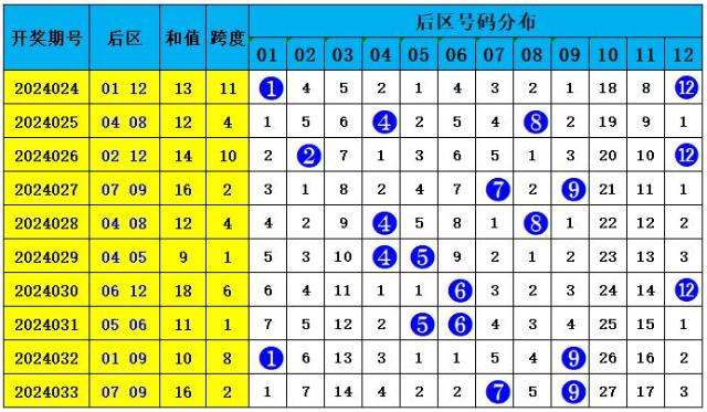 后区5码参考:03 05 07 08 12