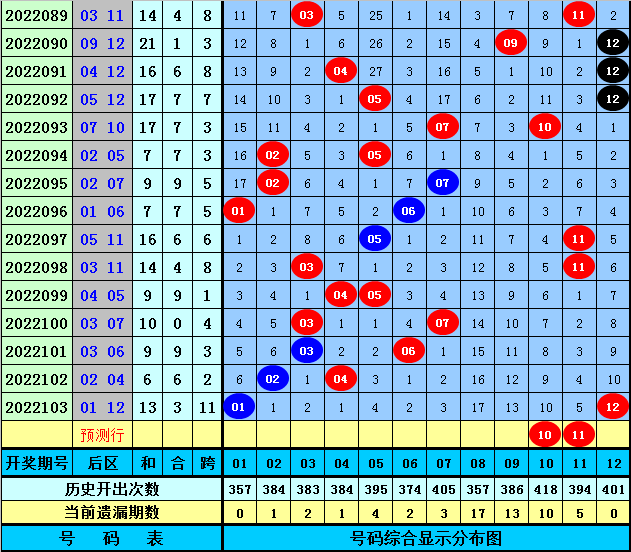 后区五码推荐:08、09、10、11、12