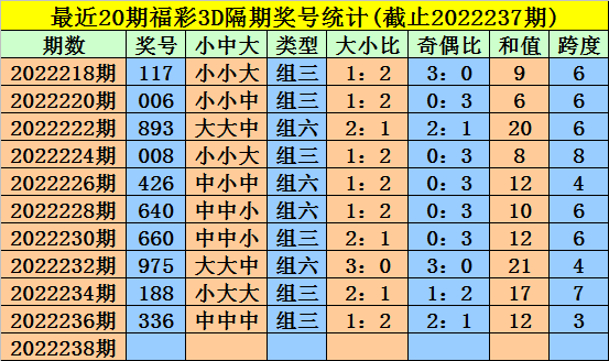 238期金心福彩3D预测奖号:大小分析