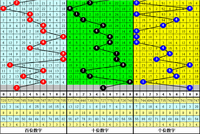 跨度:跨度近期出现在0-9之间,振幅较大,上期开出跨度0,跨度下降8点,本期注意跨度走高,参考跨度6。
