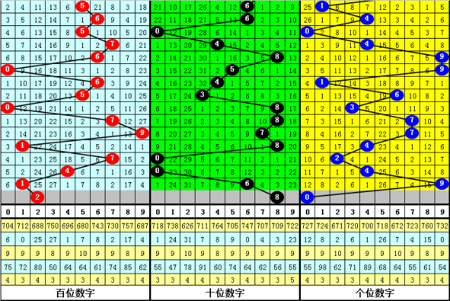 百位分析:最近50期表现较热的号码有:7出现8次,5出现7次,1出现6次;表现较冷的号码有:3出现3次,2、4、6、8出现4次。出号奇偶比为29:21,012路比为17:18:15。本期该位绝杀两码5、9,参考号码0、2、3,精选一码2。