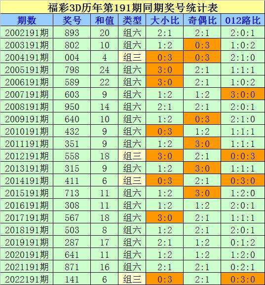 组选类型判断:在第191期历史同期开奖中,组六开出17次,组三开出4次,今年同期看好开出组六号码。