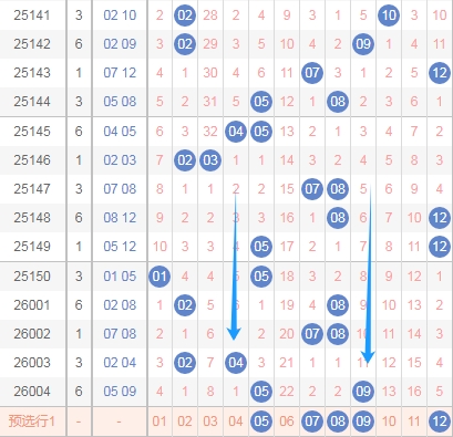 那么根据上面的分析,体彩大乐透第2026005期后区得到这些数据: