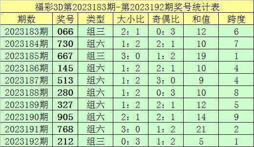 其中大小比0:3,奇偶比1:2,和值5,跨度1。