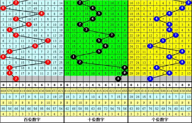 个位:其下期奖号1路和2路在该位大热,0路近7次全部轮空,本期该位注意0路解冻,关注号码3。