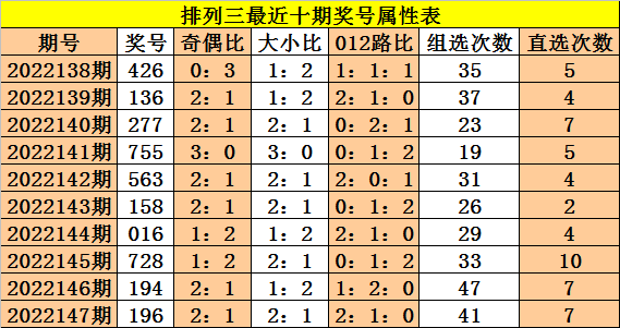 开奖回顾:体彩排列三第2022147期奖号为:196。和值为:16,跨度为:8。