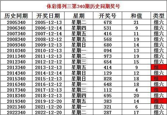 2023年12月20日排列三第340期开奖,历史同期分别开出奖号: