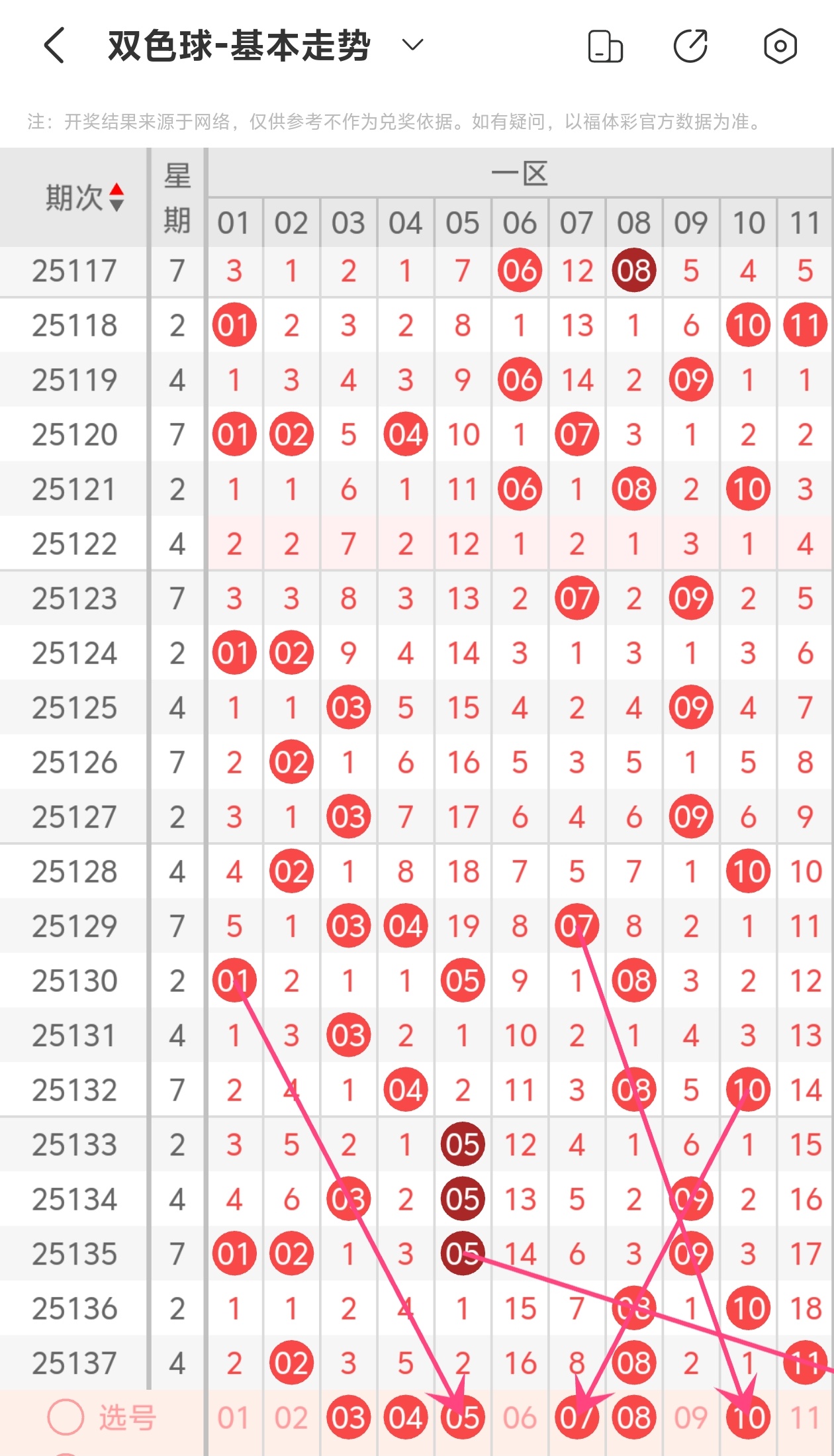 下面是我对2025138期福彩双色球的分析和预判,希望通过我的分析能让大家今晚大红!福彩双色球上期开奖号码如下图: