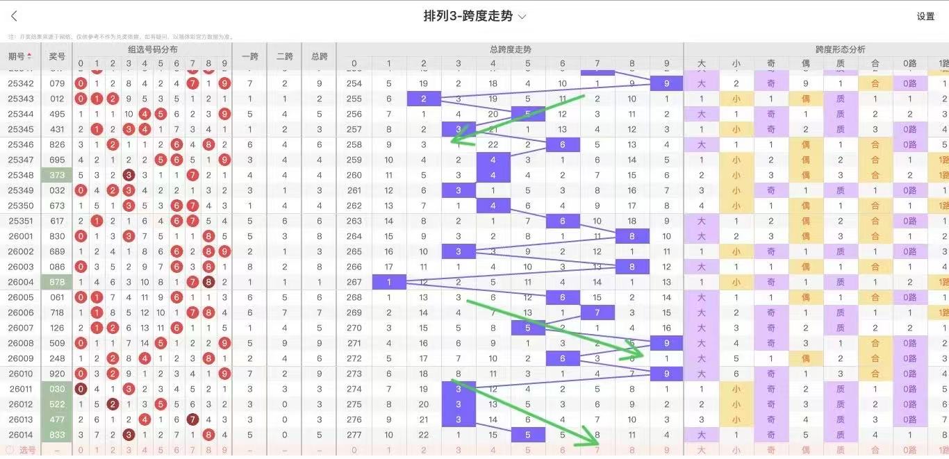 根据走势对跨度观察统计得到以下分析结果: