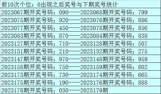 上期回顾:福利彩票3D第2023178期开奖结果:奖号为030,奖号和值为:3,奖号跨度为:3,奇偶形态为:偶奇偶,大小形态为:小小小。