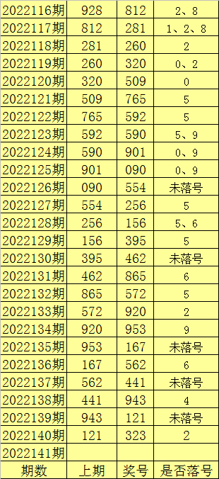 福彩3D第2022140奖号323,重号落号。在最近100期(第2022041期-2022140期)中,重号落号66期;最近20期重号落号概率为75%;最近10期重号落号概率为70%。本期预计重号可能落号。