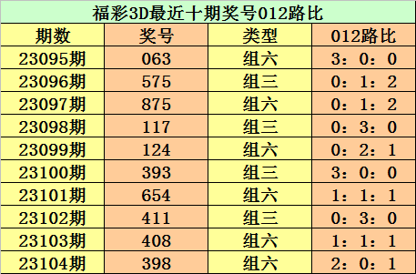 开奖回顾:第2023104期3D奖号为398。形态:组六,奇偶比2:1,大小比2:1,012路比为2:0:1。