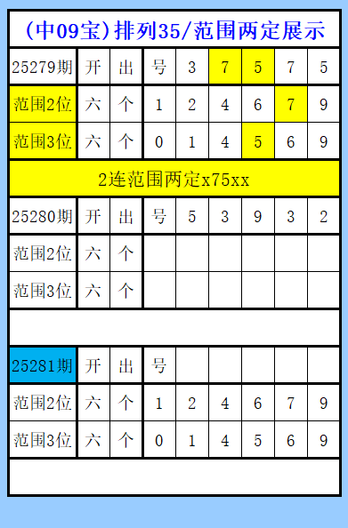 排列35第281期图文(中09宝),范围两定展示