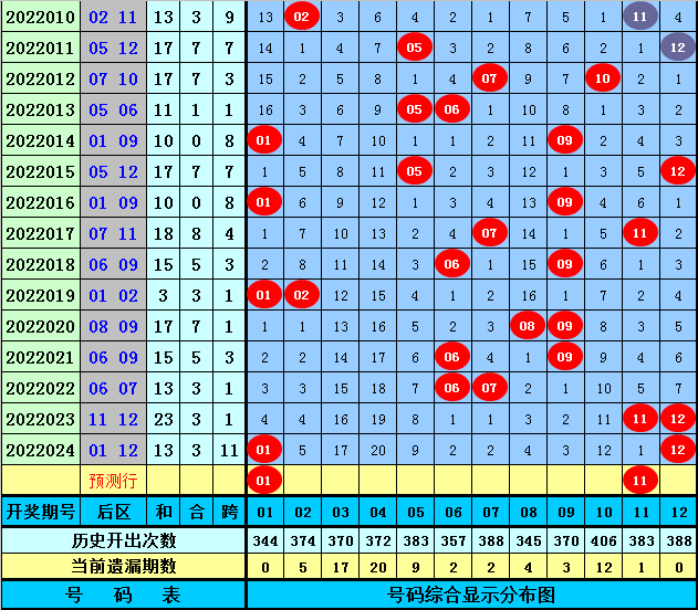 前第一区(01-12):上期开出3个奖号:01、02、11,该区最近10期断区2次,共出现18个奖号,本期预计前第一区继续走温,关注1个奖号。
