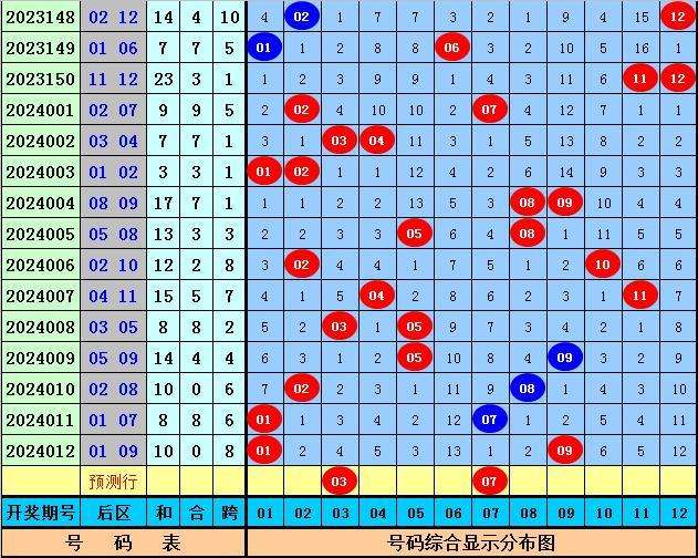 后区:上期开出奖号01+09,最近30期这两码都出现了7次,其下期落号奇偶比为12:12,大小比为13:11,012路比为11:4:9,本期后区注意号码01、03、06、07、08。