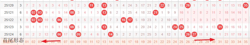 如图所示:首尾制约平衡组范围依次为:推推缩,推推? 本期形态范围优先选择红色拉伸首尾。由于上期号码处在首尾换4然后中间右推本期交换首尾移动空间连续分割形成间隔1正在重复走势预计本期继续形成走势,本期宜采取继续右推走势常规起号,或体现连号组或间隔1走势。