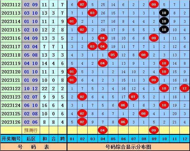 后区分析:上期后区开出号码02和06,分别遗漏0期和1期,目前后区号码按遗漏期数分别为:号码02、06遗漏0期,08遗漏1期,10遗漏2期,07遗漏3期,12遗漏4期,01、09遗漏5期,04遗漏7期,05遗漏8期,03遗漏9期,11遗漏21期,本期关注后区号码01、02、04、09、11,精选两码04和09。