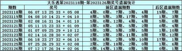 体彩大乐透第23126期奖号为:07 12 17 26 34+02 06,前区奖号奇偶比为2:3,大中小比为2:1:2,各位号码遗漏值分别为0期、14期、13期、0期和5期,后区号码遗漏值为0期和1期。