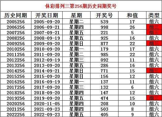 2023年9月23日排列三第256期开奖,历史同期分别开出奖号: