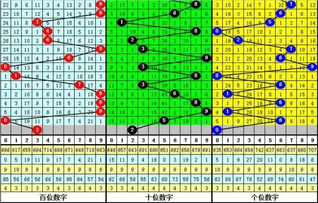 其中,号码奇偶比为32:22,奇数走势活跃;号码大小比为28:26,大小号码出现比例基本相当;号码012路比为17:19:18,基本持平。