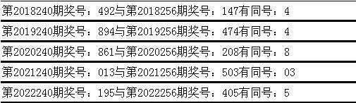 与前期历史同期奖号对比分析,在最近五年开奖中,第240期同期奖号与第256期同期奖号都出现了相同号码: