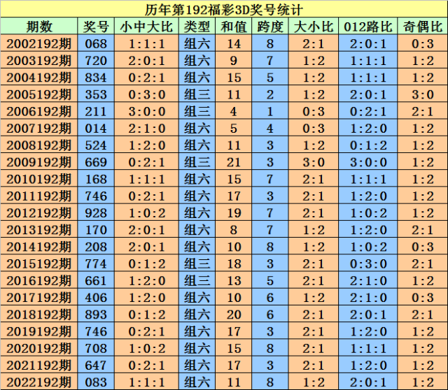 开奖回顾:福彩3D第2022192期奖号为:083。