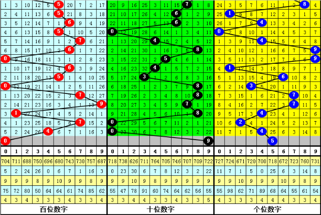 百位:2022039期-2022043期出号:79174,振幅为8点,分布比较分散,本期看好百位走小,关注0。