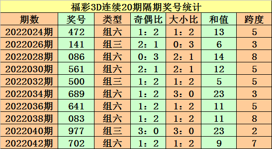 上期回顾:福彩3D第2022043期奖号:404。组三、小小小、偶偶偶。