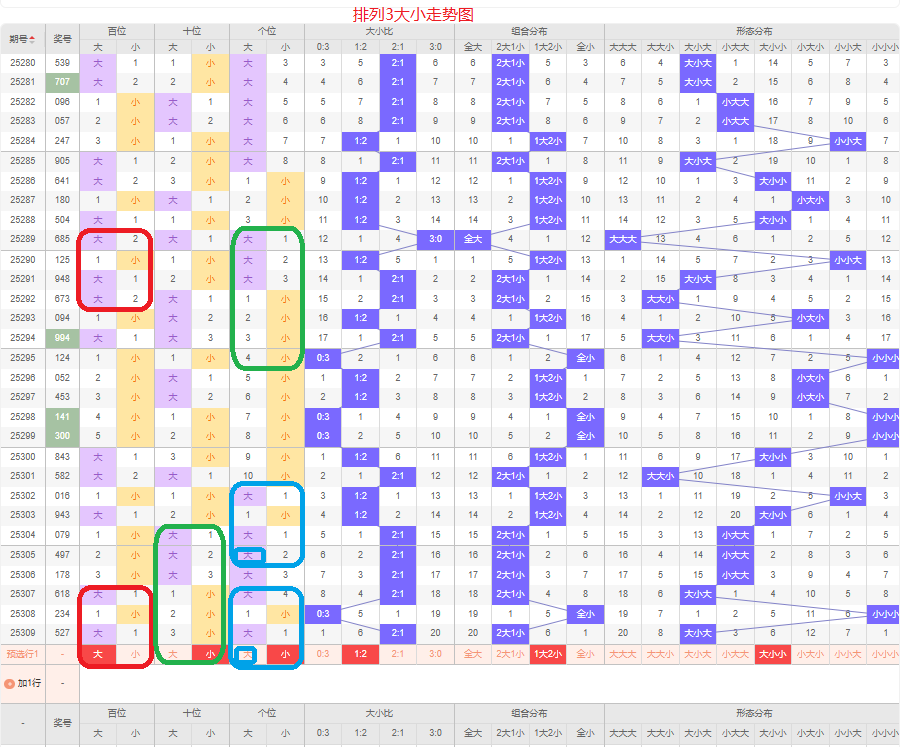十位近三期是小号码,侧重奇数的号码,侧重小号码,侧重0路和2路的号码,侧重号码03589。
