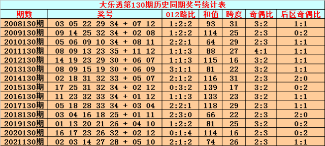 综上所述,大乐透第2022130期前区012路比参考1:3:1。