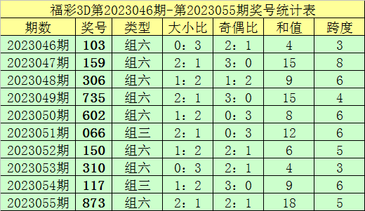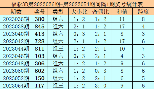 其中大小比2:1,奇偶比2:1,和值18,跨度5。