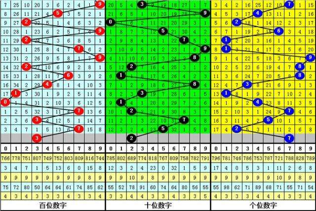 百位上期开出号码7,上升4点位,本期注意该位下降,参考号码3。