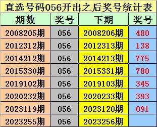 上期回顾:排列三第2023255期开奖号码为056,历史上组选出现37次,直选出现8次。