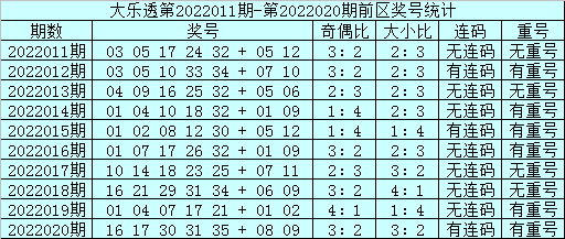 前区重号分析:上期前区包含1个重号:17,最近20期含有重号的奖号有12期,共开出15个重号,最近10期含有重号的奖号有6期,共开出8个重号,本期注意重号转冷,排除上期已开出的奖号。
